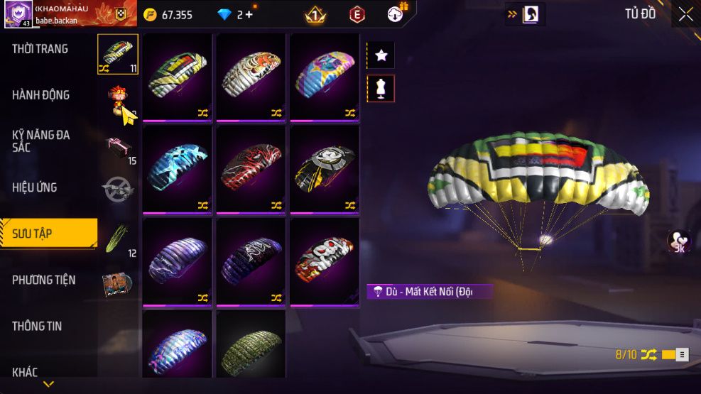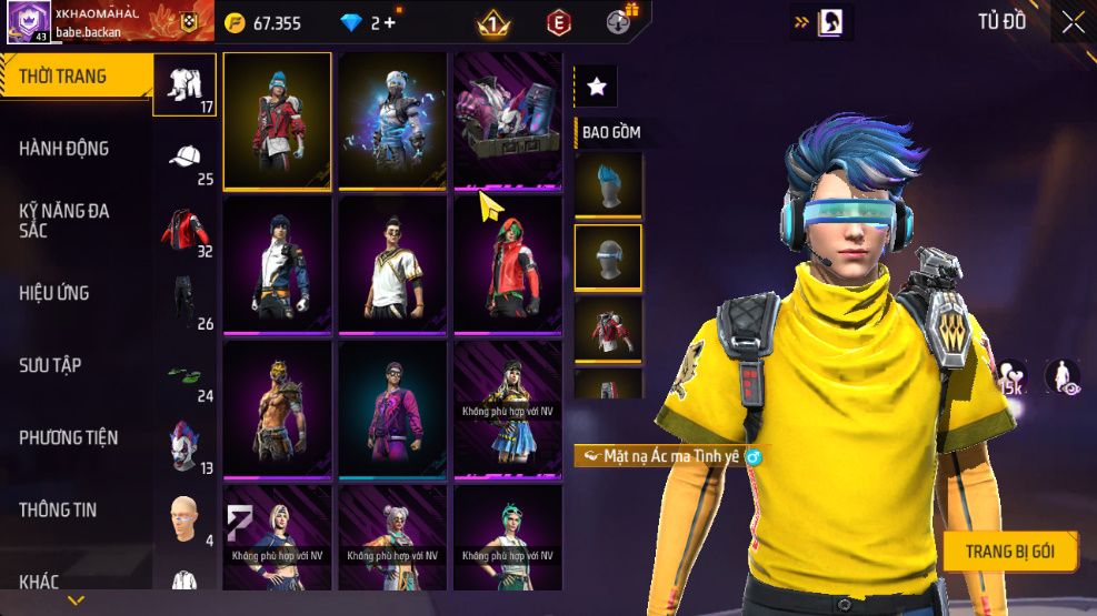Thời trang + súng: Nhiều skin súng đẹp + balo – mặt nạ