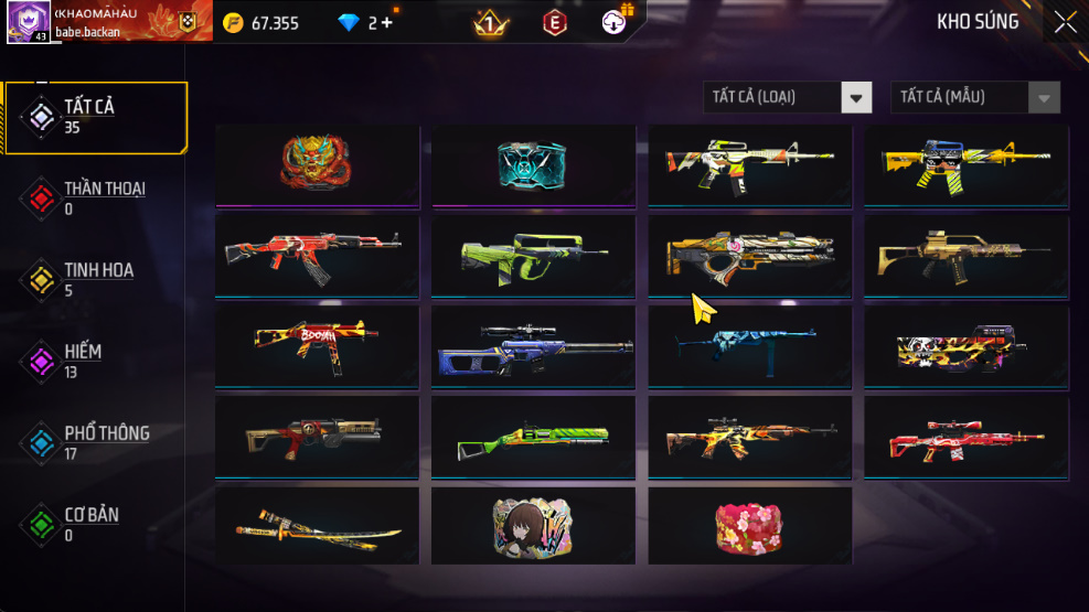 - Nhiều skin súng đẹp + balo – mặt nạ