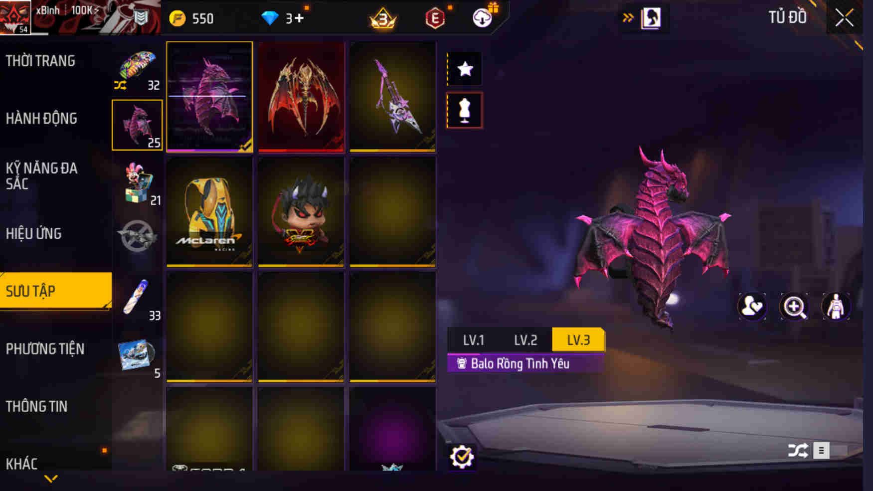 - Skin: Nhiều skin súng, balo, thời trang, dù, kho đồ nhiều vật phẩm giá trị…