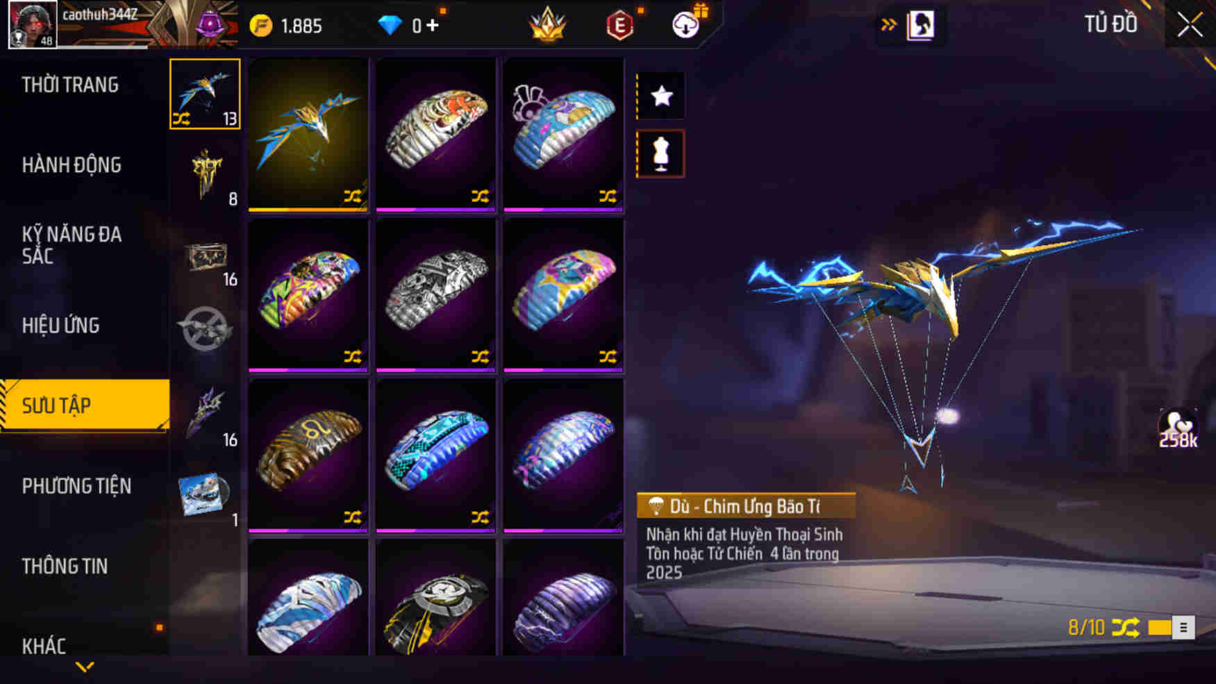 - Skin: Nhiều skin súng, balo, thời trang, dù, kho đồ nhiều vật phẩm giá trị…