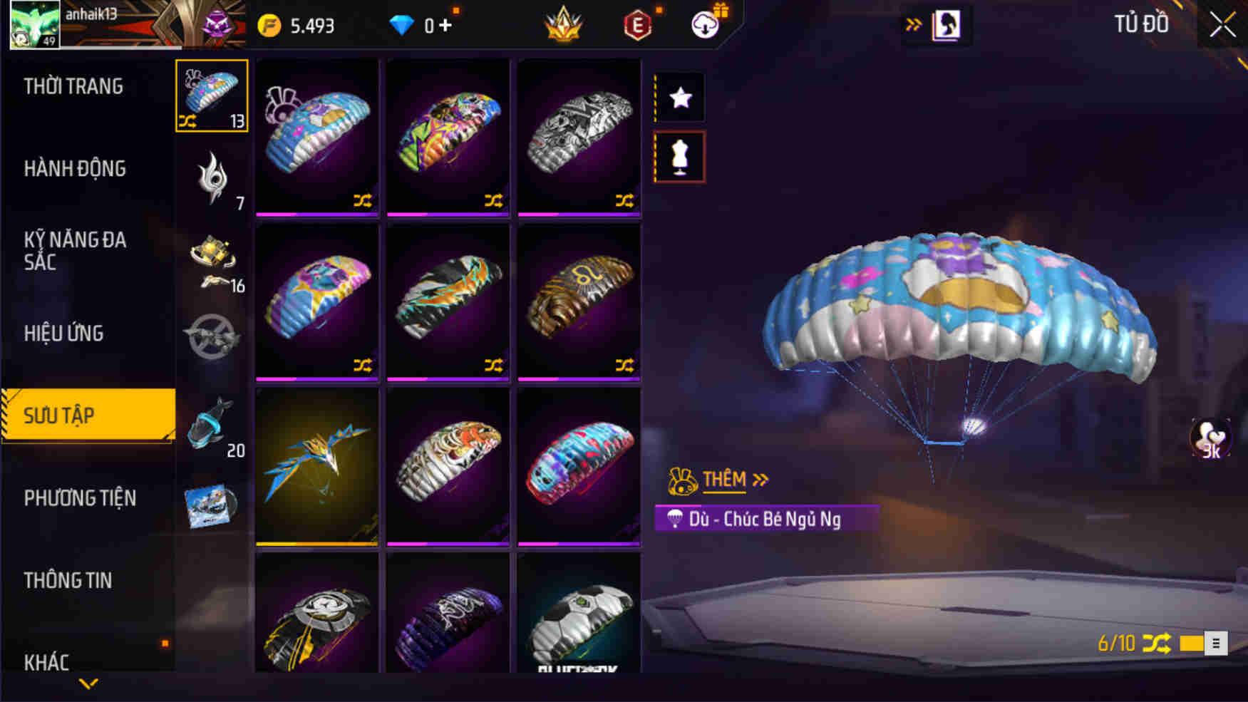 - Skin: Nhiều skin súng, balo, thời trang, dù, kho đồ nhiều vật phẩm giá trị…
