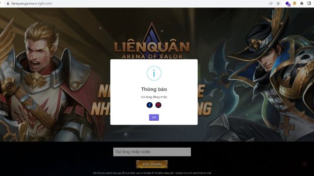 Truy cập trang nhập code chính thức của Garena Liên Quân
