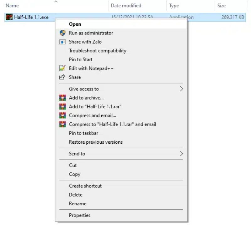 Bước 1: Tải game về máy và giải nén, sau đó tìm và chọn file SetupHL1.1 để chạy cài đặt