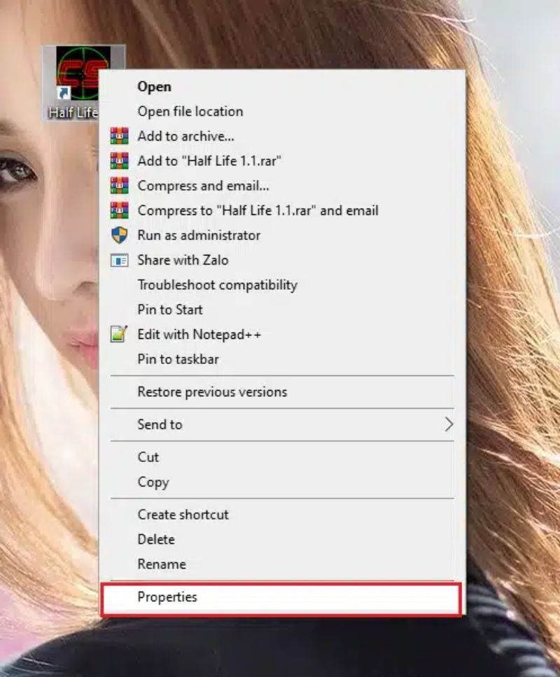 Bước 4: Thoát ra màn hình desktop, nhấn chuột phải vào game chọn “Properties“