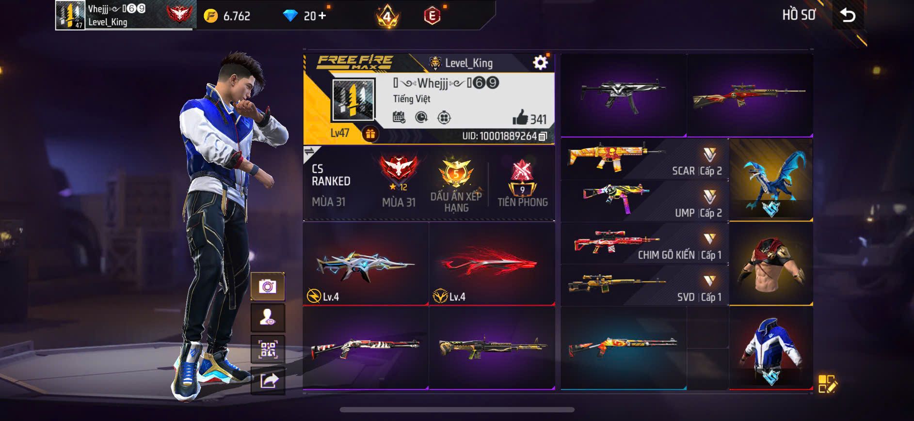 • Level cao và rank đẹp, thể hiện kỹ năng và thành tích trong game.